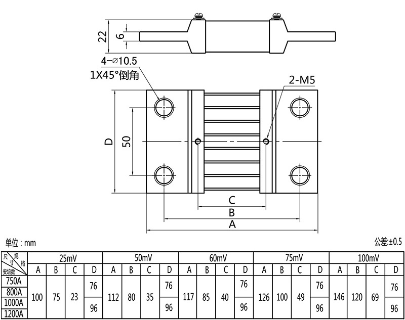 • 750A-1250A 分流器